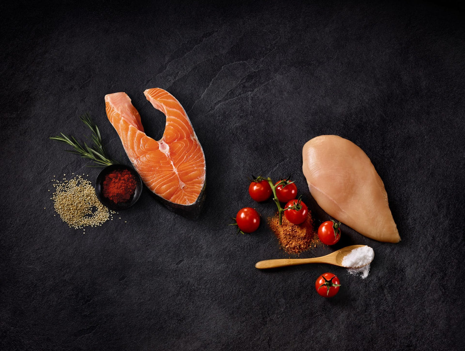 Chacun des ingrédients de nos formules a un rôle spécifique et est présent en quantité optimale. Nous faisons preuve de transparence lorsqu’il est question des ingrédients qui composent nos nourritures, ainsi que des raisons derrière leur sélection.