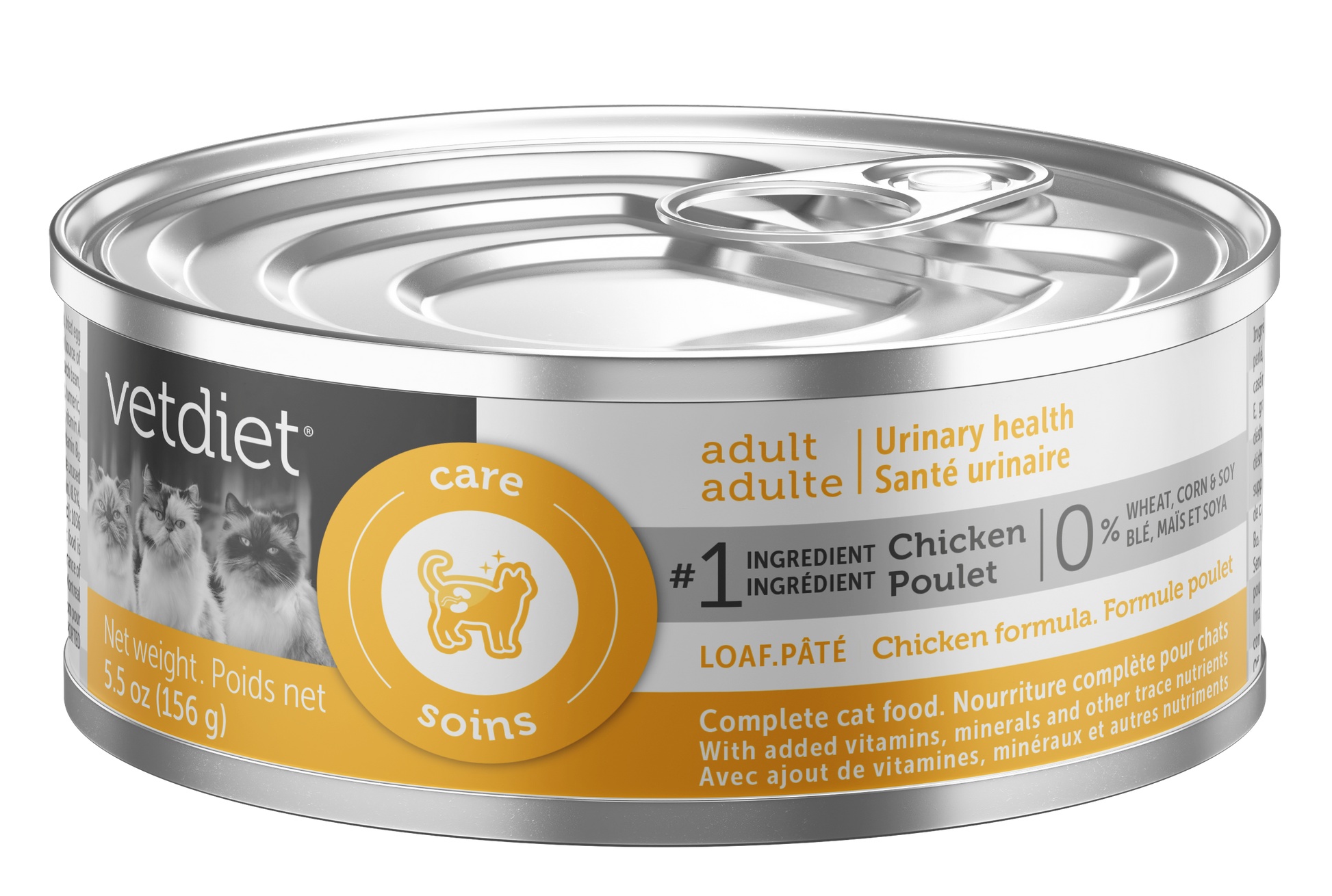 La nourriture Vetdiet® pour chat adulte – santé urinaire formule au poulet est spécialement formulée avec du poulet et d'autres ingrédients pour aider à soutenir la santé du système urinaire.
